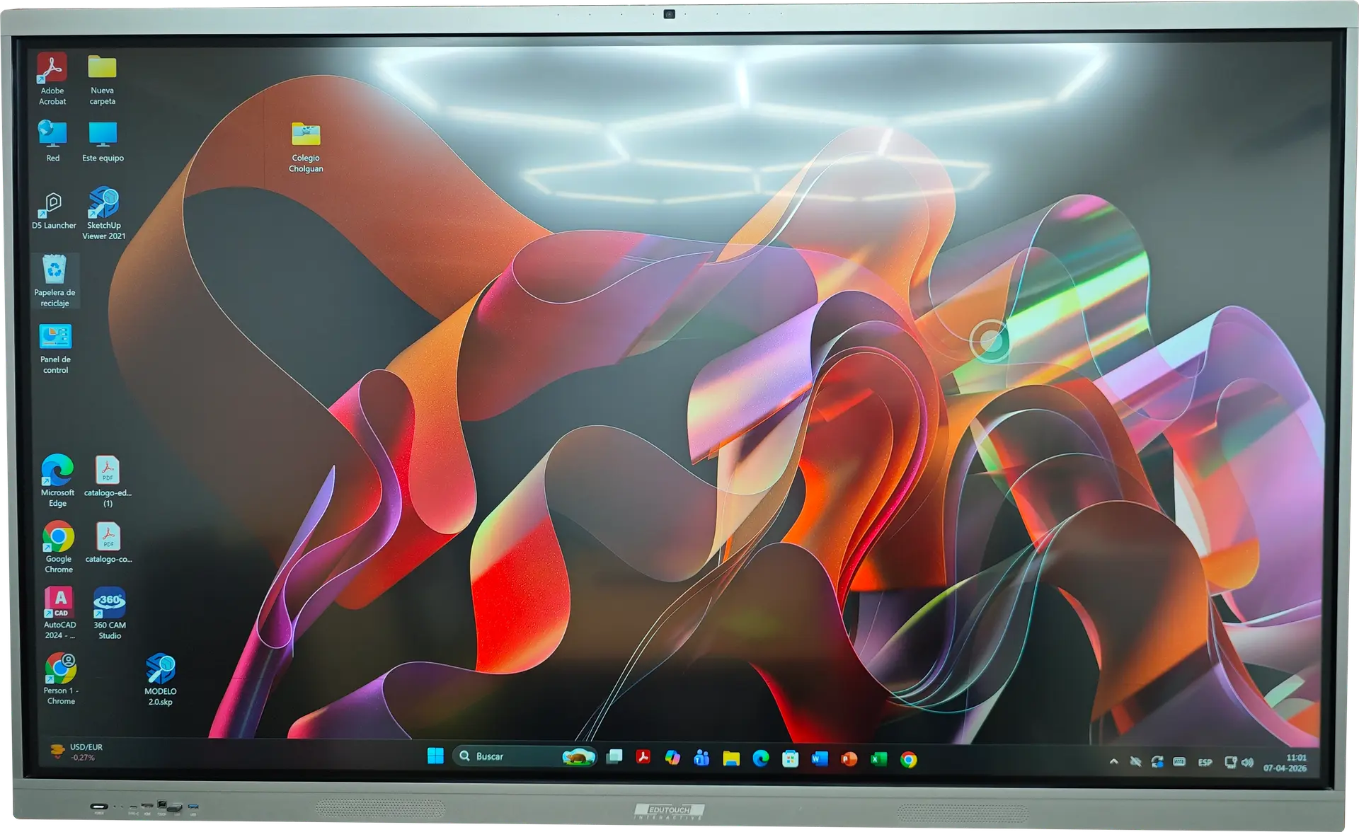 La función multitáctil permite que el docente manipule gráficos, anote sobre videos en vivo y guarde las pizarras digitales para enviarlas por correo. Es tener un lienzo infinito donde la creatividad pedagógica no tiene límites. -
